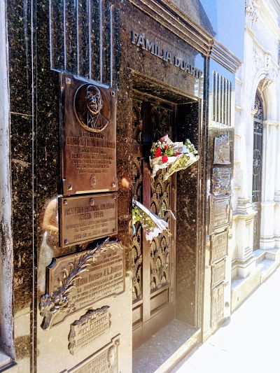 Am nächsten Tag zieht es mich in das Barrio Recoleta, nicht nur der Ort meiner ersten Spanisch-Sprachschule, sondern auch das des ungewöhnlichen Friedhofs, den viele Touristen wegen der immer noch verehrten Ex-Primera Dama Eva Perón, die hier im Mausoleum der Familie Duarte auf Umwegen zu Grabe getragen wurde, besuchen.