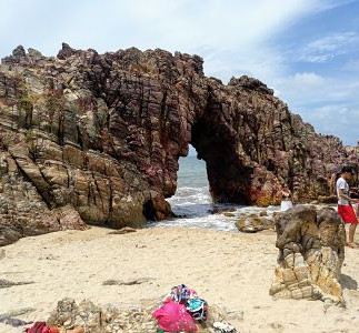 Nach ordentlichen zwei Kilometern erreiche ich den Pedra furada, den durchlöcherten Felsen, an dem die touristischen Ausflügler, ob per Boot, Buggy oder wie ich gewandert, Schlange stehen, um ein denkwürdiges Foto zu schießen. Naja.