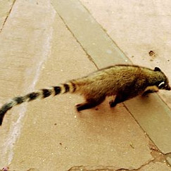 Zu den verschiedenen Ausflugszielen wird man mit dem Jungle-Bus von Station zu Station gefahren. Man kann zwischendurch aussteigen, sich Zeit für die Aussichten lassen und dann weiterfahren. Lustige gelbe und orangefarbene Schmetterlinge begleiten die Fahrten. Die frechen Nasenbären, die auch hier den Touristen auf die Pelle rücken, heißen hier Quatis und sind nicht so niedlich, wie sie aussehen.