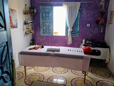 Layla hat ein kleines Wellnesszimmer im spirituellen und wohlriechenden Ambiente eingerichtet, in dem sie Ayurveda- Massagen und Therapien anbietet. Nebenbei besucht sie Kurse immer am Wochenende an der Fakultät in Fortaleza, um ihr Wissen auf diesem Gebiet zu erweitern. Sie kümmert sich auch um die Vermietung einer kleinen Lodge in diesem Haus, die man über Airbnb reservieren kann.
